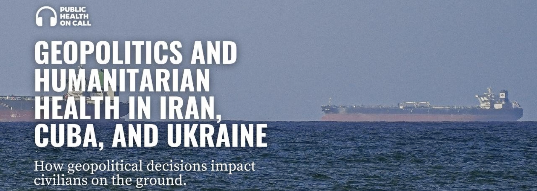 On an episode with the Johns Hopkins Bloomberg School of Public Health’s Public Health On Call podcast, CIGH affiliate Ruth Gibson detailed how geopolitical decisions impact civilians on the ground, as seen in current situations in Iran, Cuba, and Ukraine. For this episode, Gibson talked with host Dr. Josh Sharfstein, distinguished professor of the practice in Health Policy and Management at Johns Hopkins, pediatrician, and former secretary of Maryland’s Health Department.