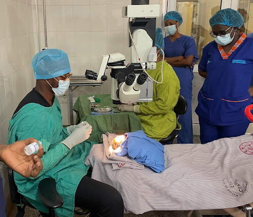 In 2012, Tabin and partners launched Ghana’s first eye surgery residency program, with Ahmed as one of the first participants. Initially hesitant to pursue ophthalmology due to the field’s limited resources and expertise, Ahmed was encouraged by mentors to help meet the immense need. Ahmed traveled to Nepal and India for training before returning as the first vitreoretinal surgeon in Ghana’s Ashanti region, where he now leads efforts to expand ophthalmic training and access to retinal care.